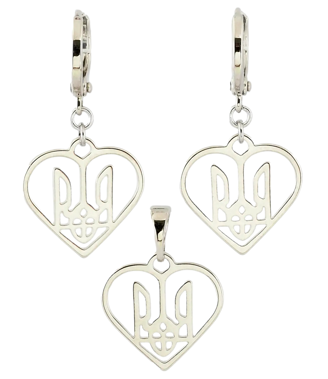 Код: 252559Набір Xuping колір 18K Сережки Кулон Герб України в сердечку-+204 грн /136 грн опт.Купити