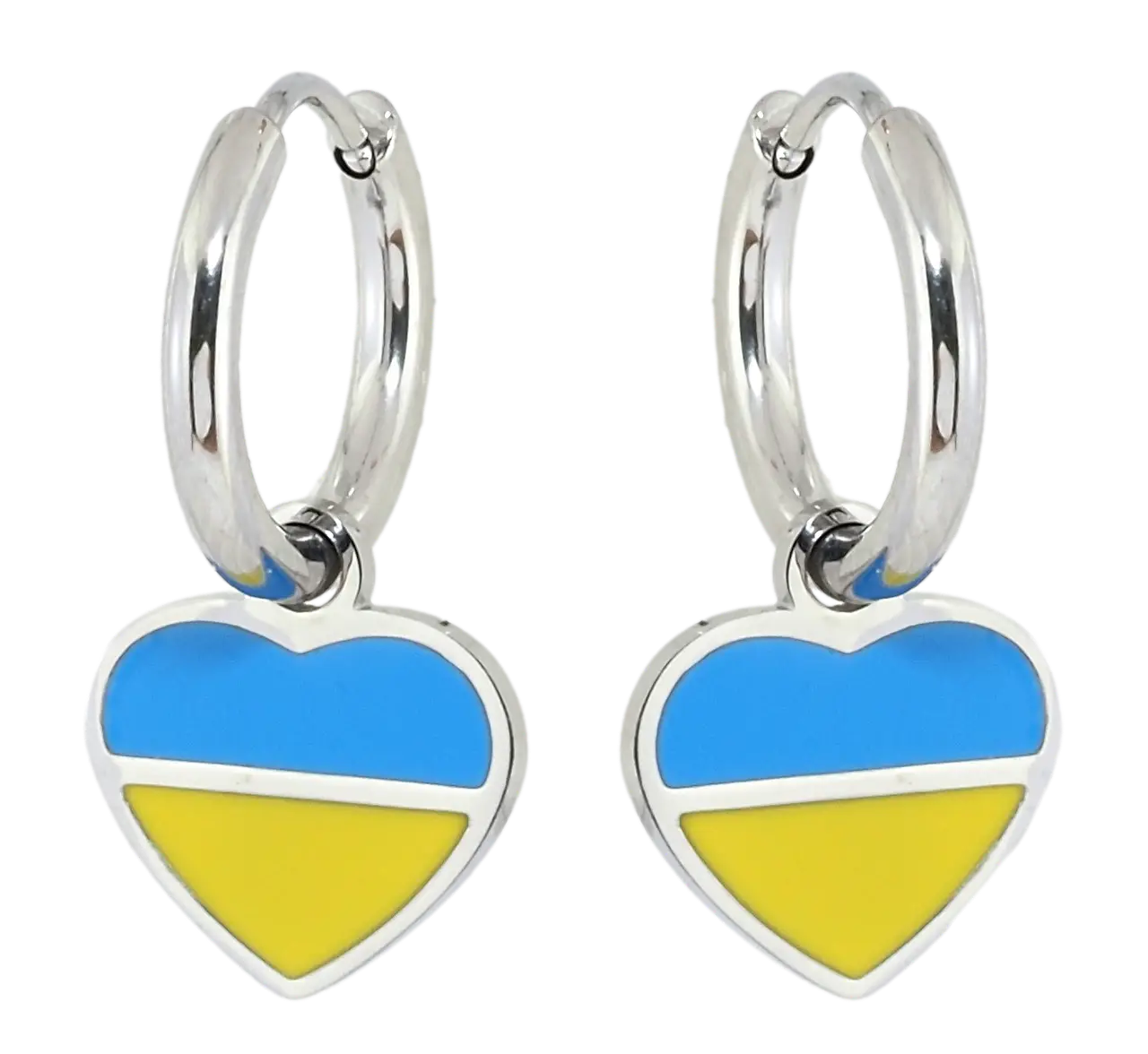 Код: 169090Сережки Xuping TTM Stainless Steel колір Родій пусети Сердечки Патріотичні жовто-блакитні-+134 грн /89 грн опт.Купити
