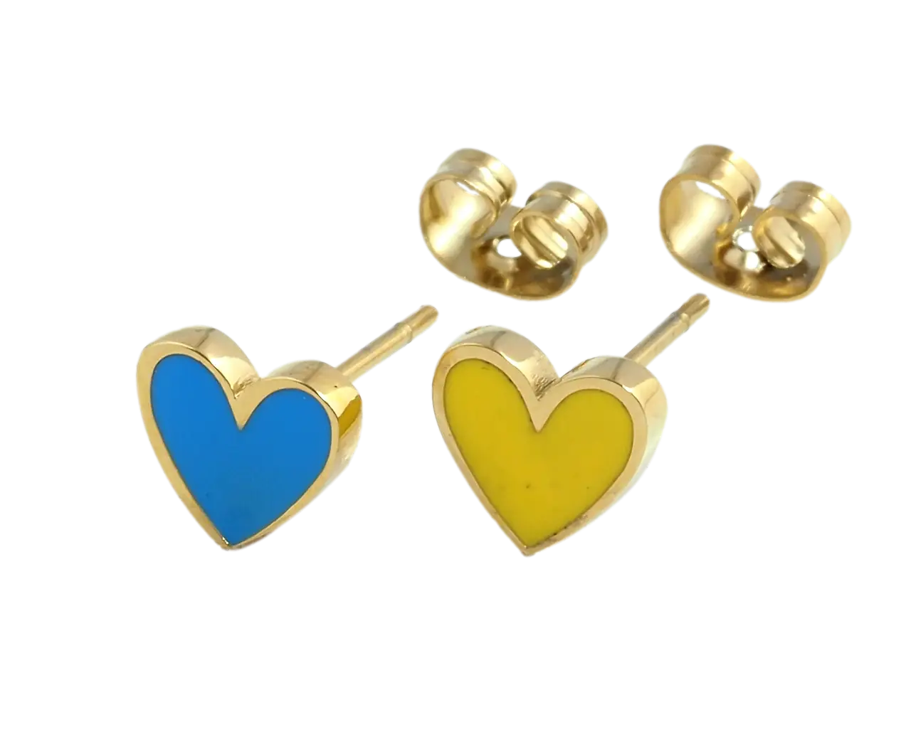 Код: 169088Сережки Xuping TTM Stainless Steel колір 14К пусети Сердечки Патріотичні жовто-блакитні-+134 грн /89 грн опт.Купити - HIT