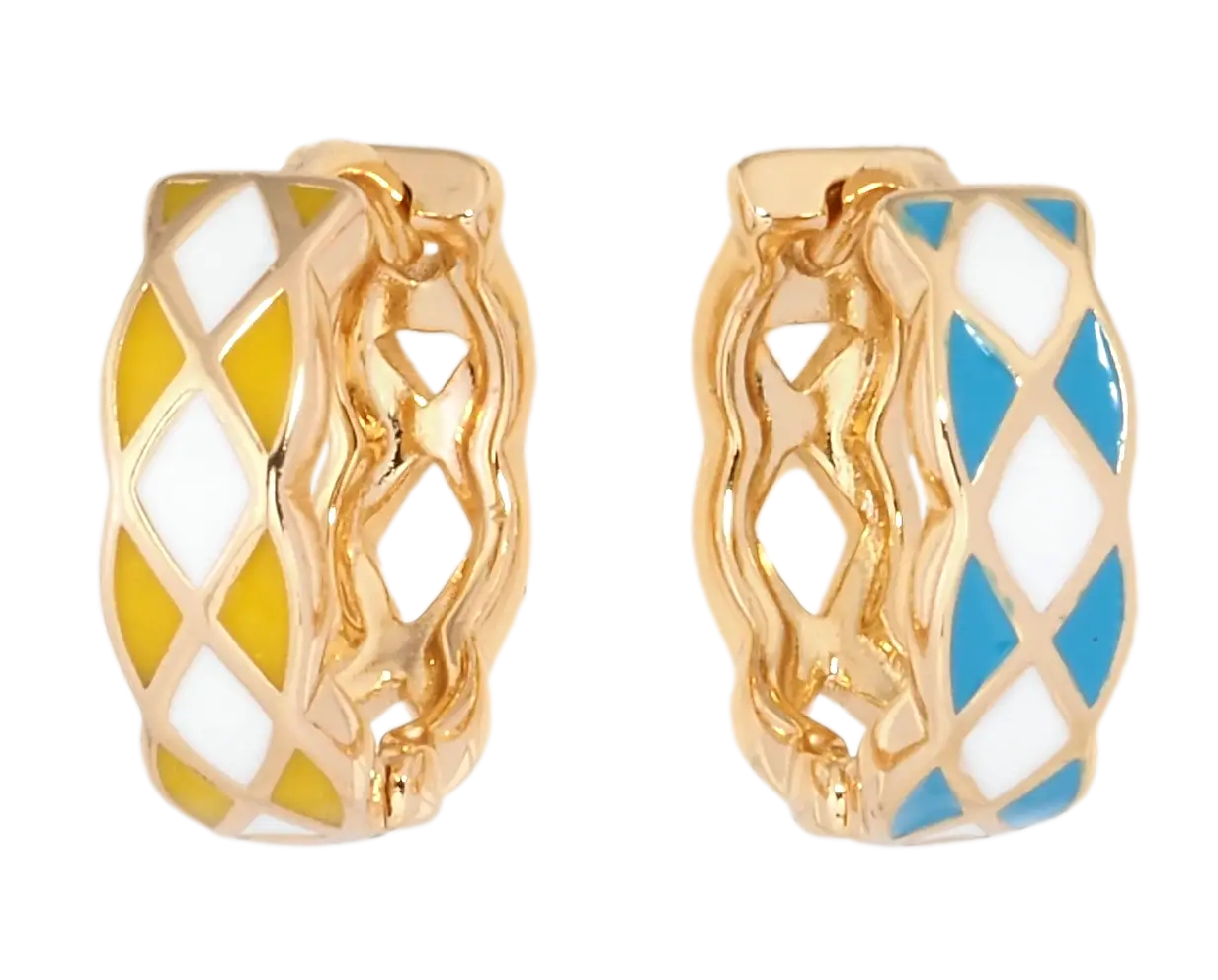 Код: 204679Сережки Xuping колір 18K колечки Візерунок з біло-жовтою емаллю-+114 грн /76 грн опт.Купити- HIT