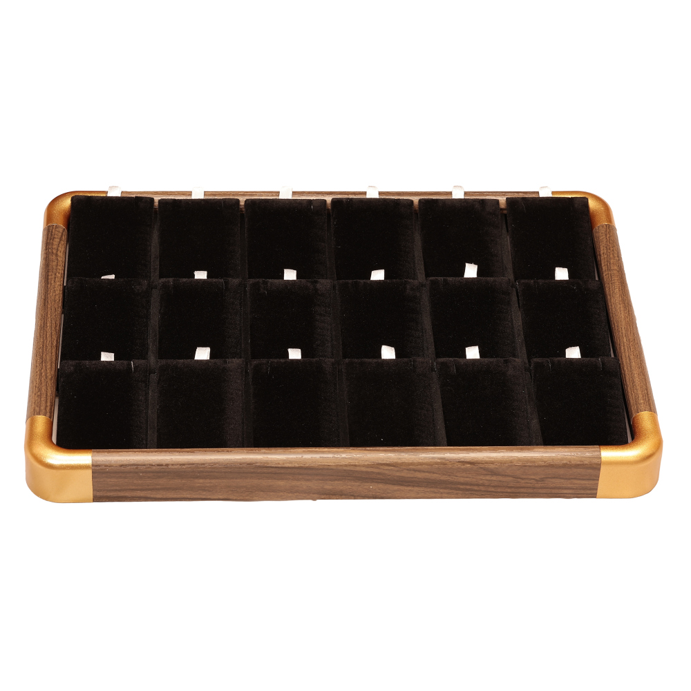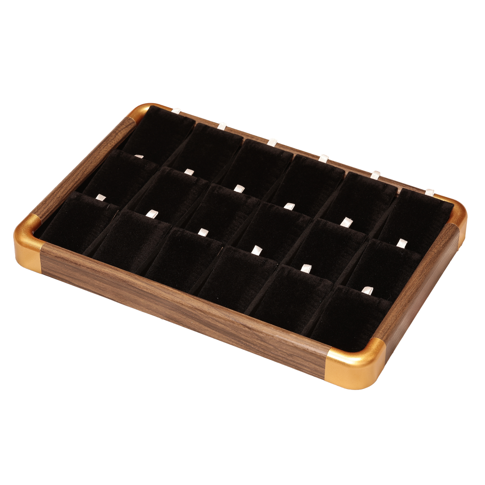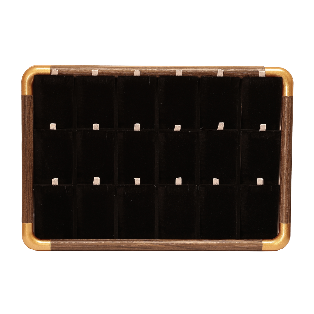 Підставка під сережки, кулони на ланцюжку Планшет 18 подушечок, що виймаються, пластик з візерунком під дерево з чорними оксамитовими подушечками дшв-35х24х3см