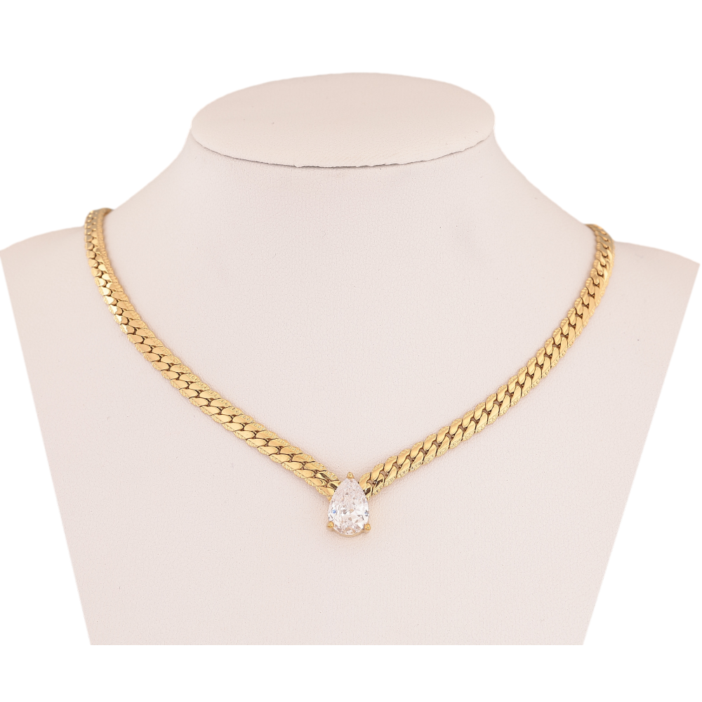 Підвіска на ланцюжку Нержавіюча сталь "Кристальна крапелька" довжина 41-46см х 4мм