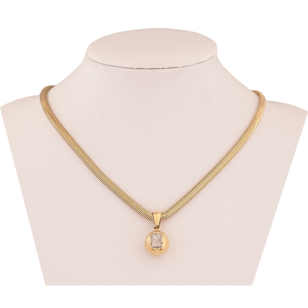 Підвіска на ланцюжку Нержавіюча сталь "Куля з кристалом" довжина 42-47см х 3мм