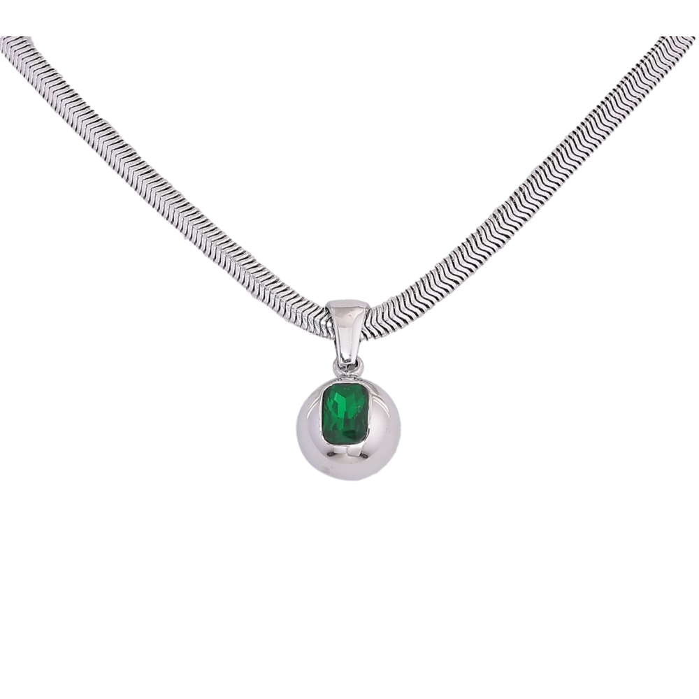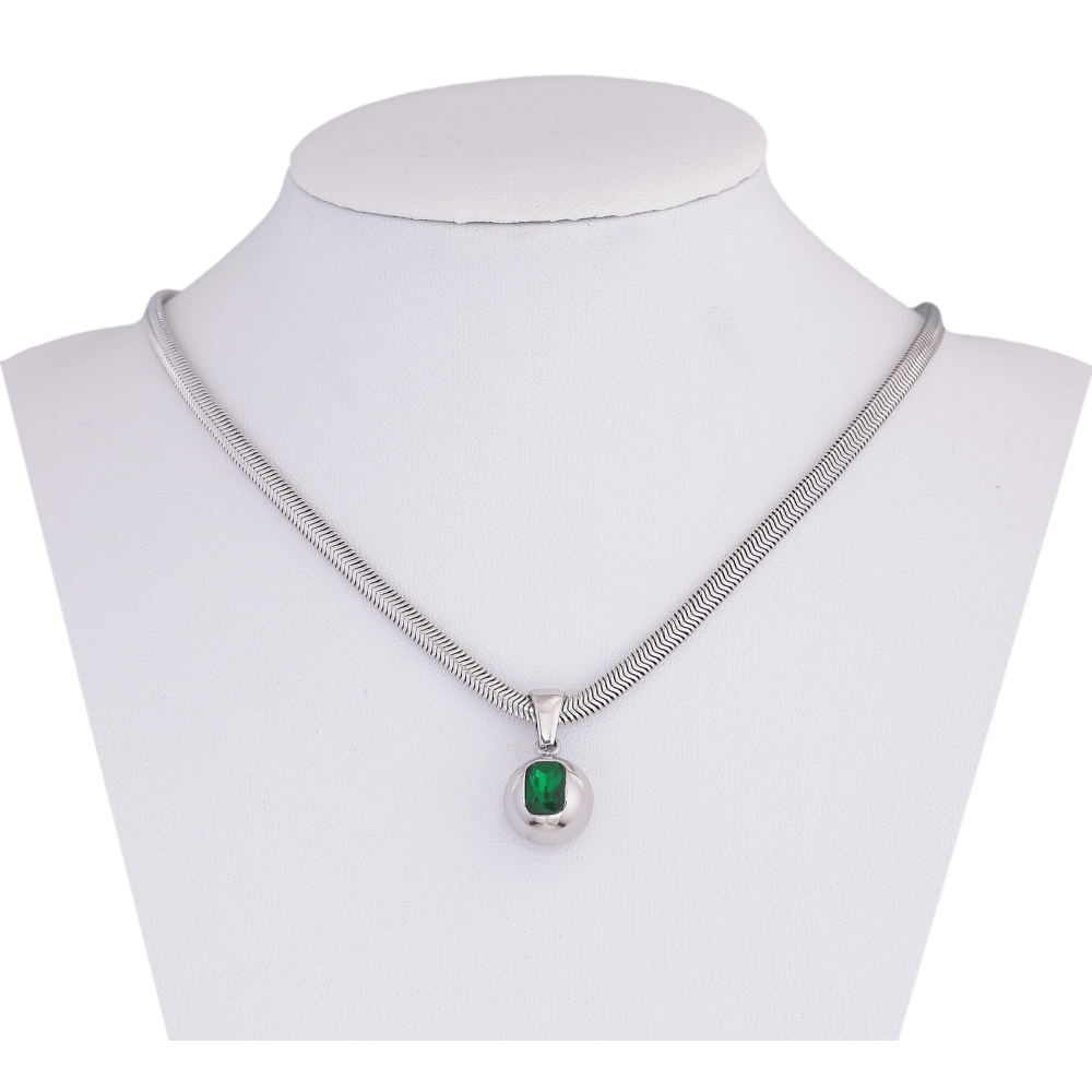 Підвіска на ланцюжку Нержавіюча сталь "Куля з зеленим кристалом" довжина 41-46см х 3мм
