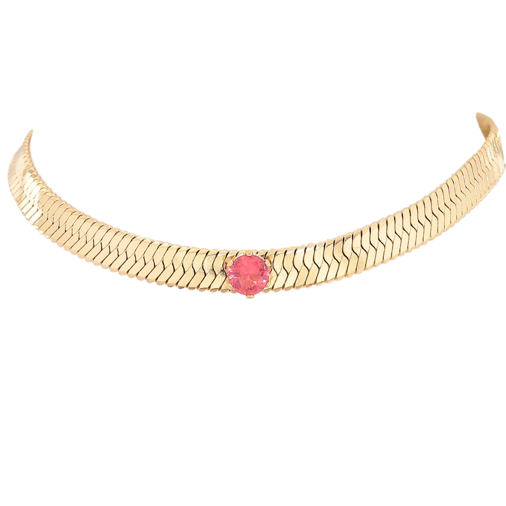 Підвіска на ланцюжку Нержавіюча сталь "Ланцюжок із рожевим кристалом" довжина 35-40см х 5мм
