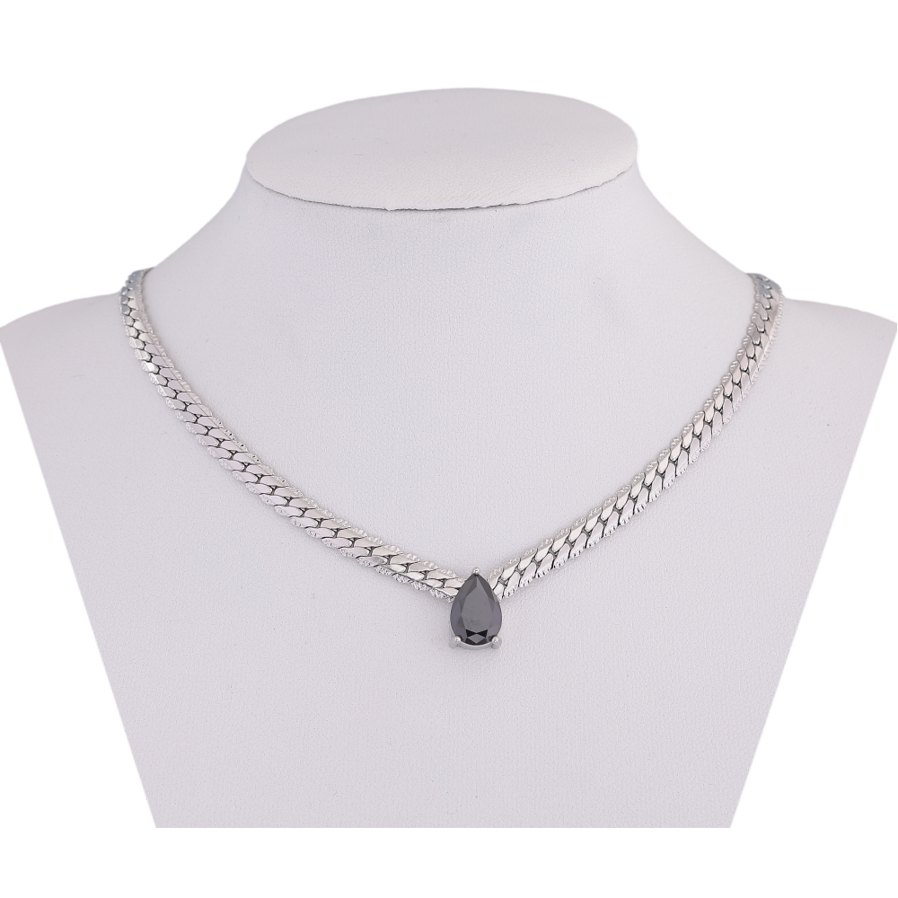 Підвіска на ланцюжку Нержавіюча сталь "Ланцюжок з чорною кристальною крапелькою" довжина 40-45см х 4мм