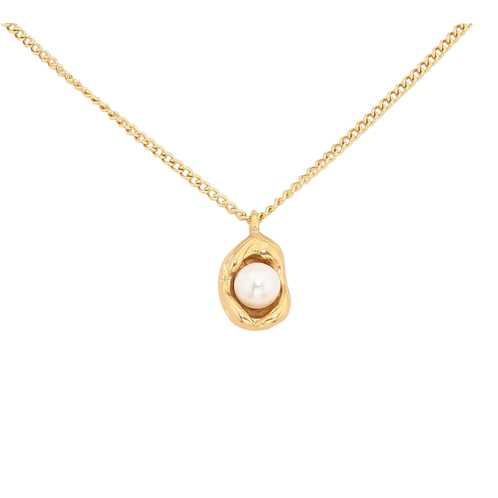 Підвіска на ланцюжку Нержавіюча сталь "Перлина в декоративній оправі" довжина 41-46см х 1.5мм