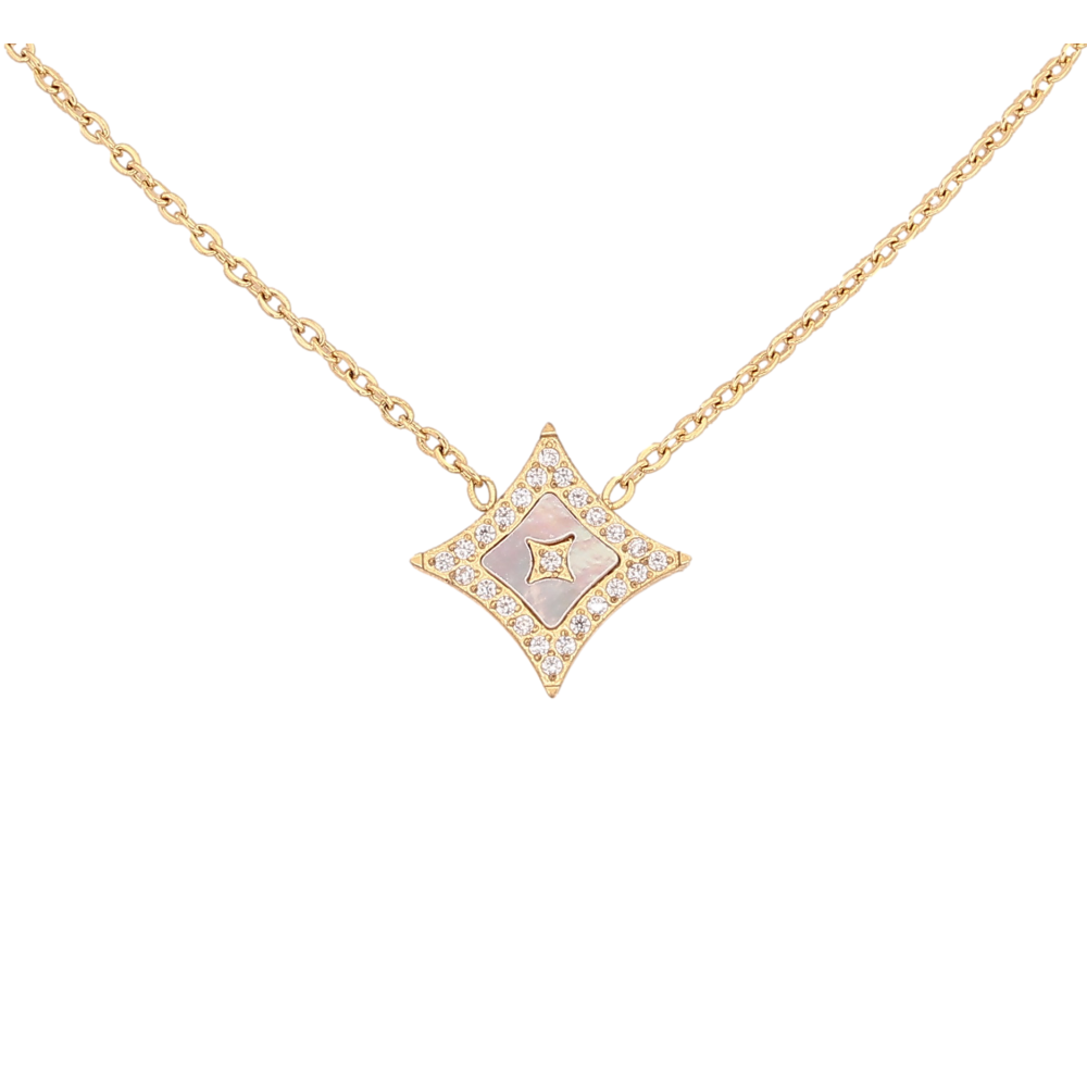 Підвіска на ланцюжку Нержавіюча сталь "Ромб з кристалами та перламутровою вставкою" довжина 42-47см х 1мм