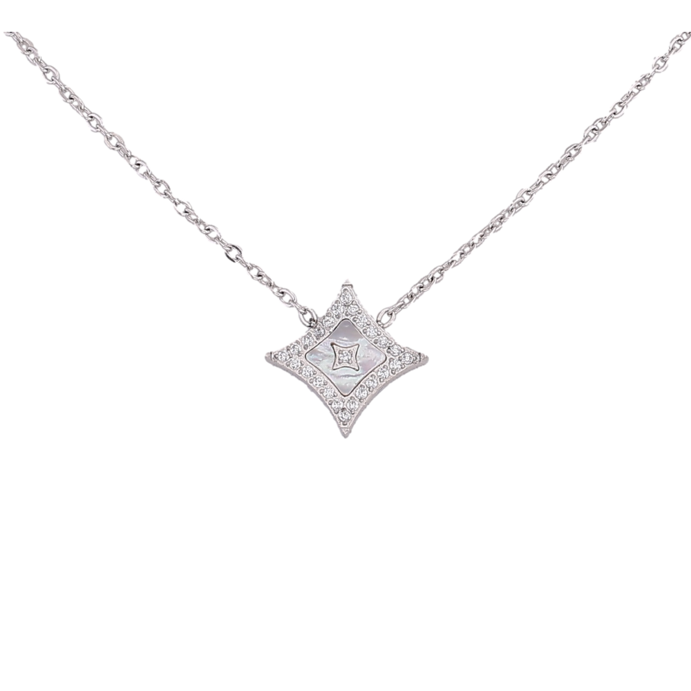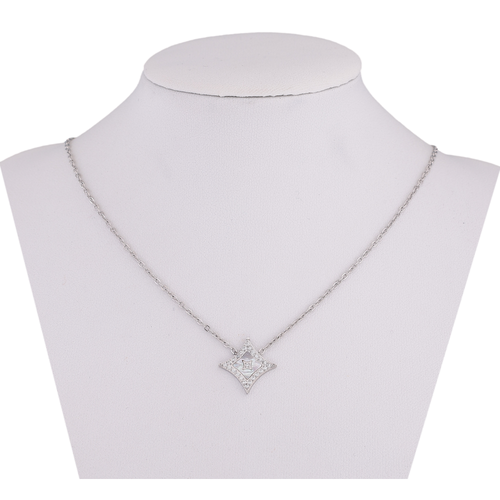 Підвіска на ланцюжку Нержавіюча сталь "Ромб з кристалами та перламутровою вставкою" довжина 42-47см х 1мм