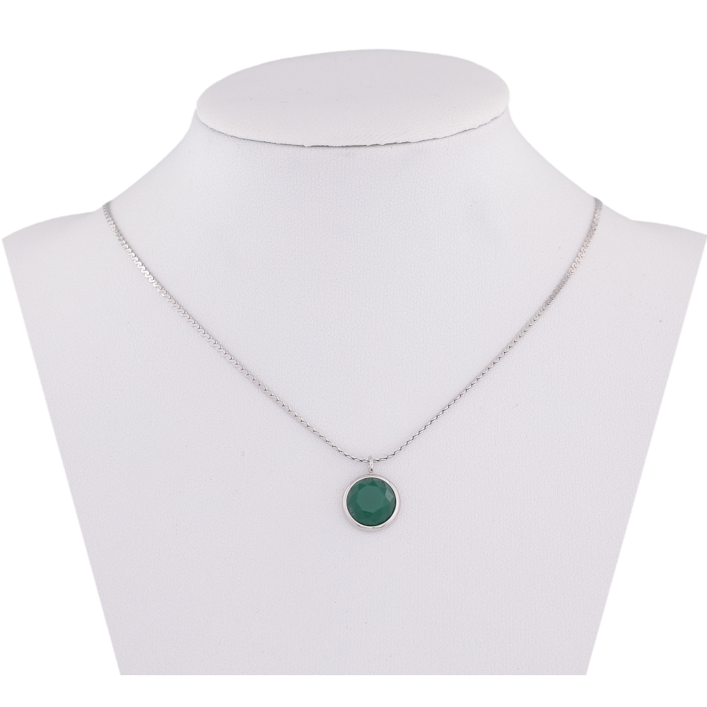 Підвіска на ланцюжку Нержавіюча сталь "Зелений кристал, ø 10мм" довжина 41-46см х 1мм