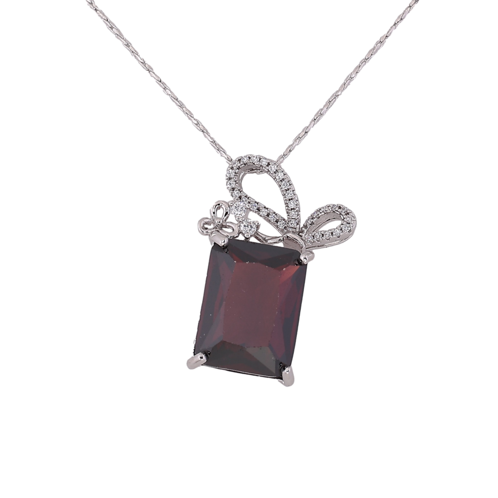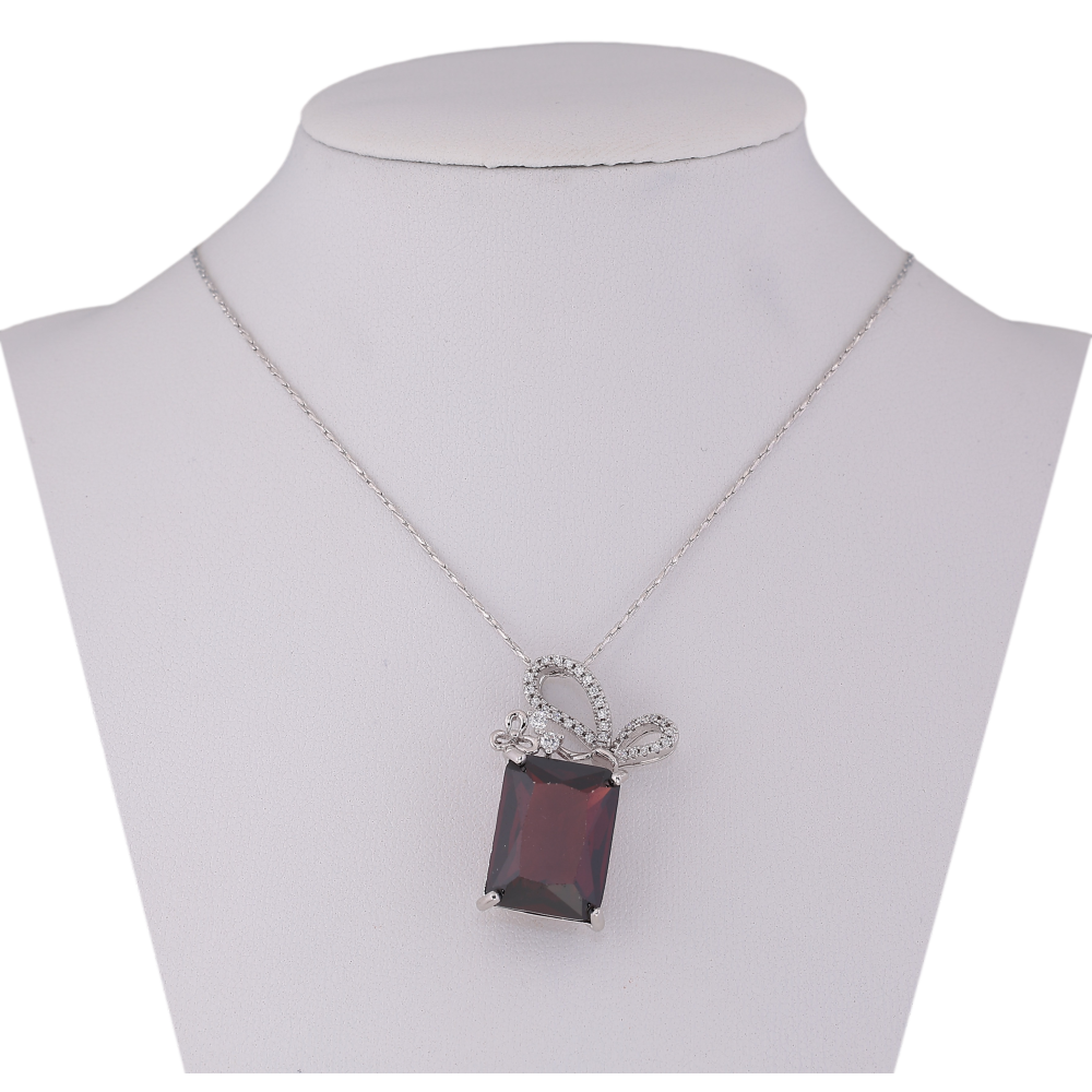 Підвіска на ланцюжку Xuping колір Родій "Червоний кристал з бантом" довжина 40-45,5см х 1мм