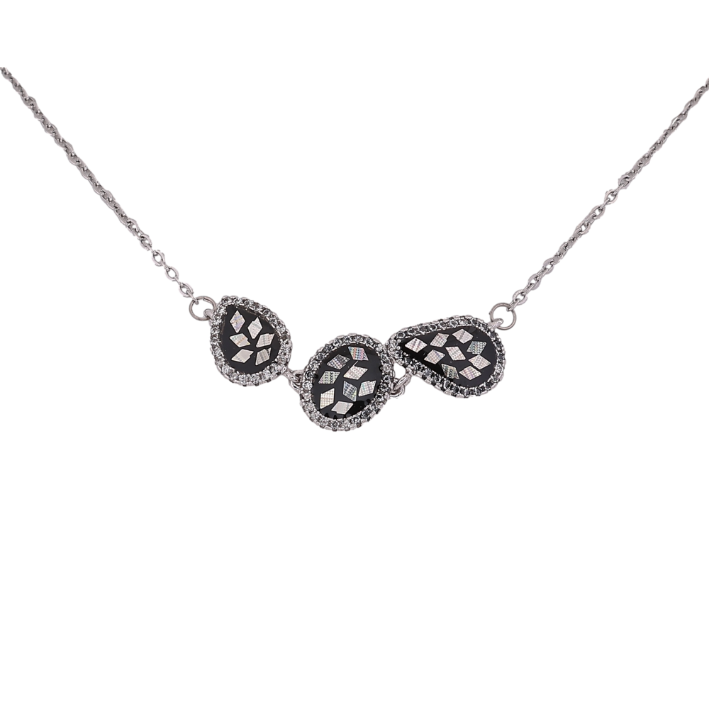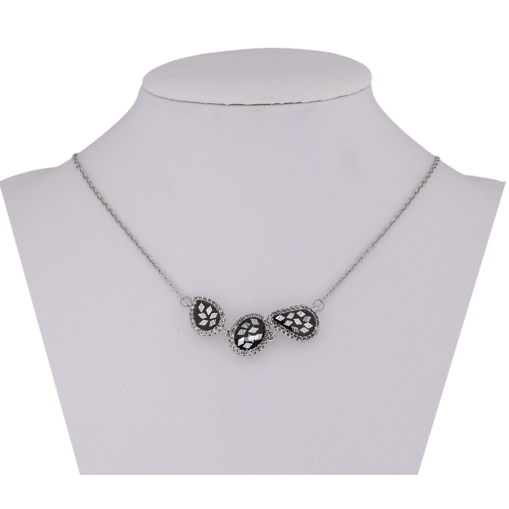 Підвіска на ланцюжку Xuping колір Родій "Крапельки з чорною емаллю та блискітками в обрамленні кристалів" довжина 45-50см х 1мм