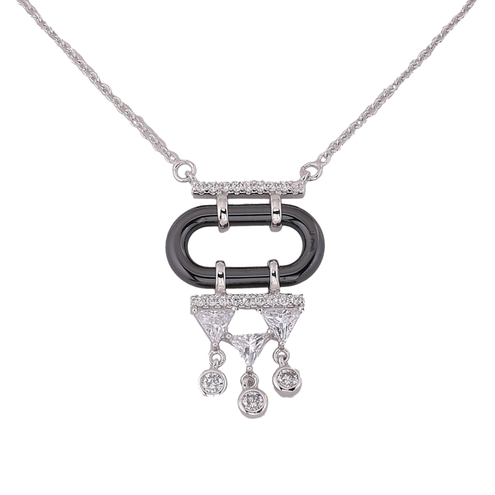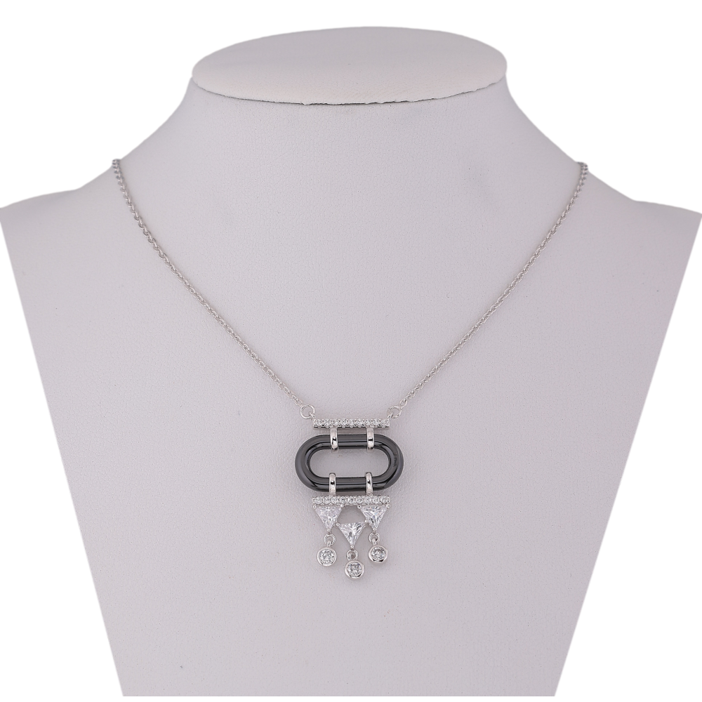 Підвіска на ланцюжку Xuping колір Родій "Кристальні підвіски на чорному керамічному кільці" розмір 48-53см х 1мм