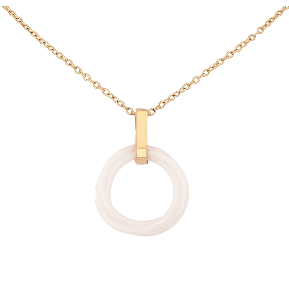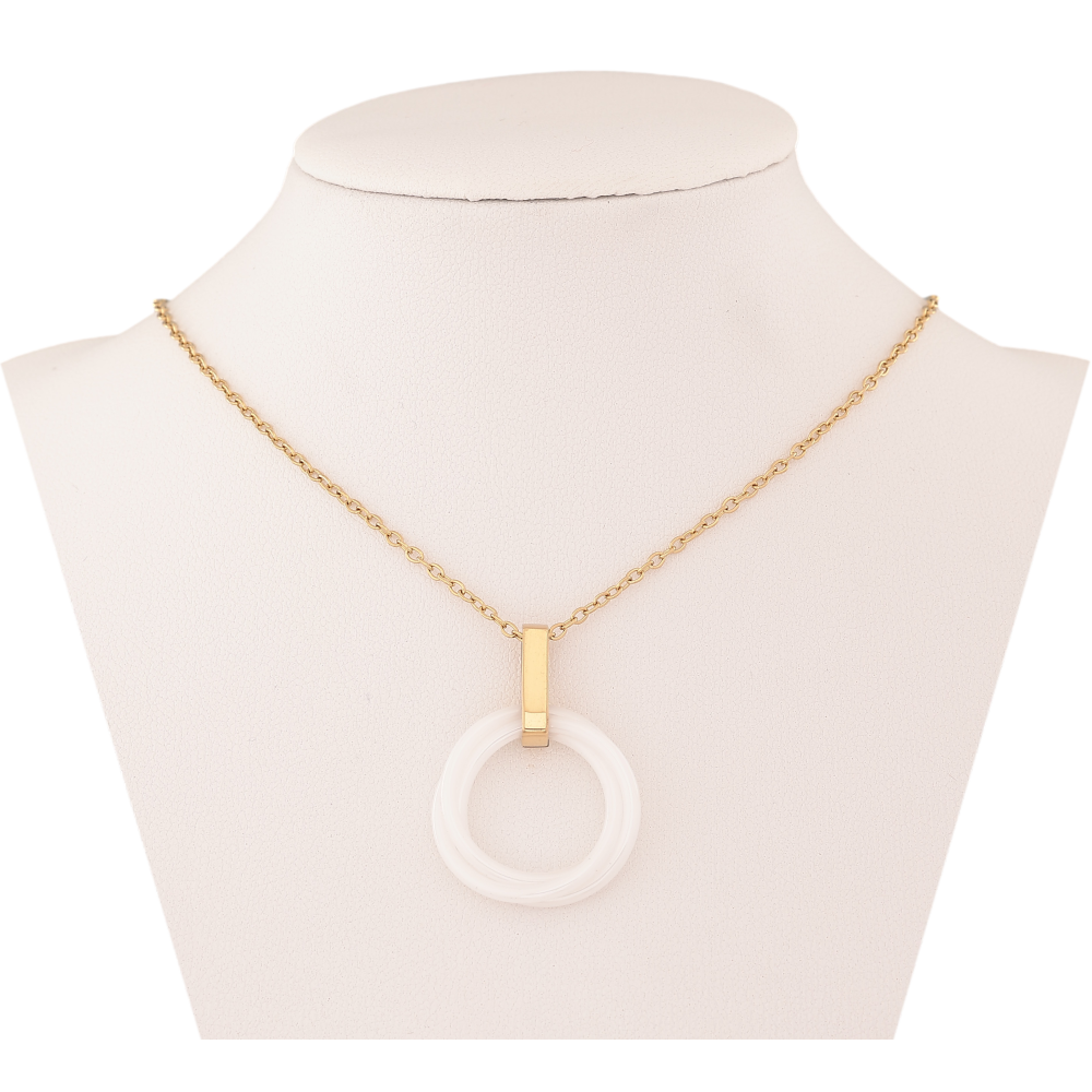 Підвіска на ланцюжку Xuping ТТМ Stainless Steel колір 14К "Біле керамічне колечко" довжина 45-50см х 1.5мм