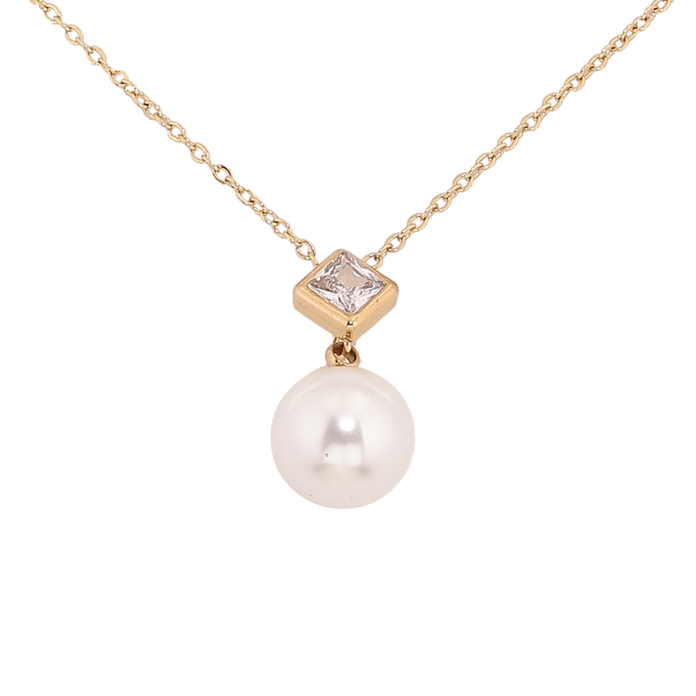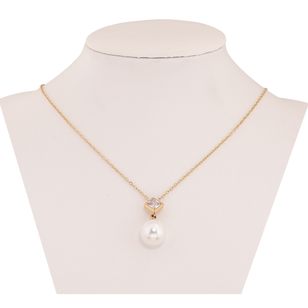 Підвіска на ланцюжку Xuping ТТМ Stainless Steel колір 14К "Кристал з перлиною" довжина 46-51см х 1мм
