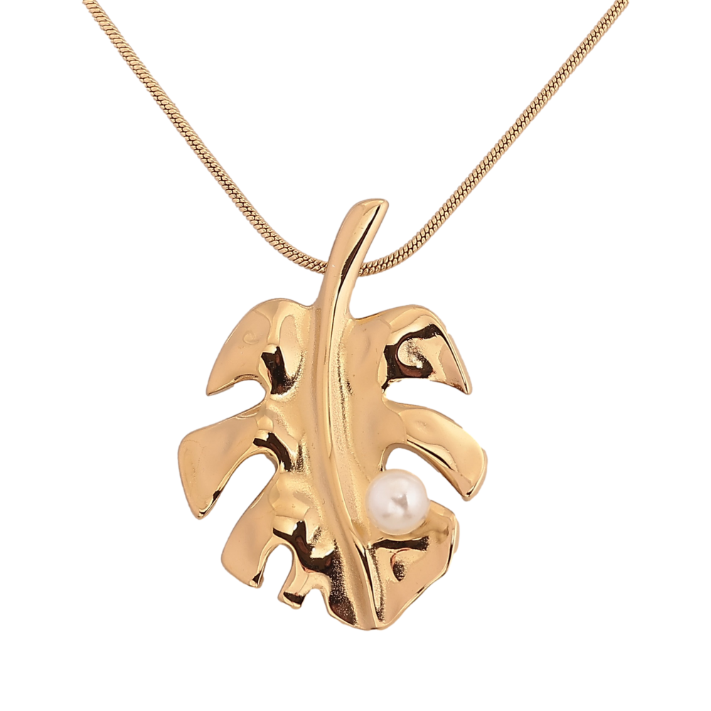 Підвіска на ланцюжку Xuping ТТМ Stainless Steel колір 14К "Листок з перлиною" довжина 45-50см х 1мм