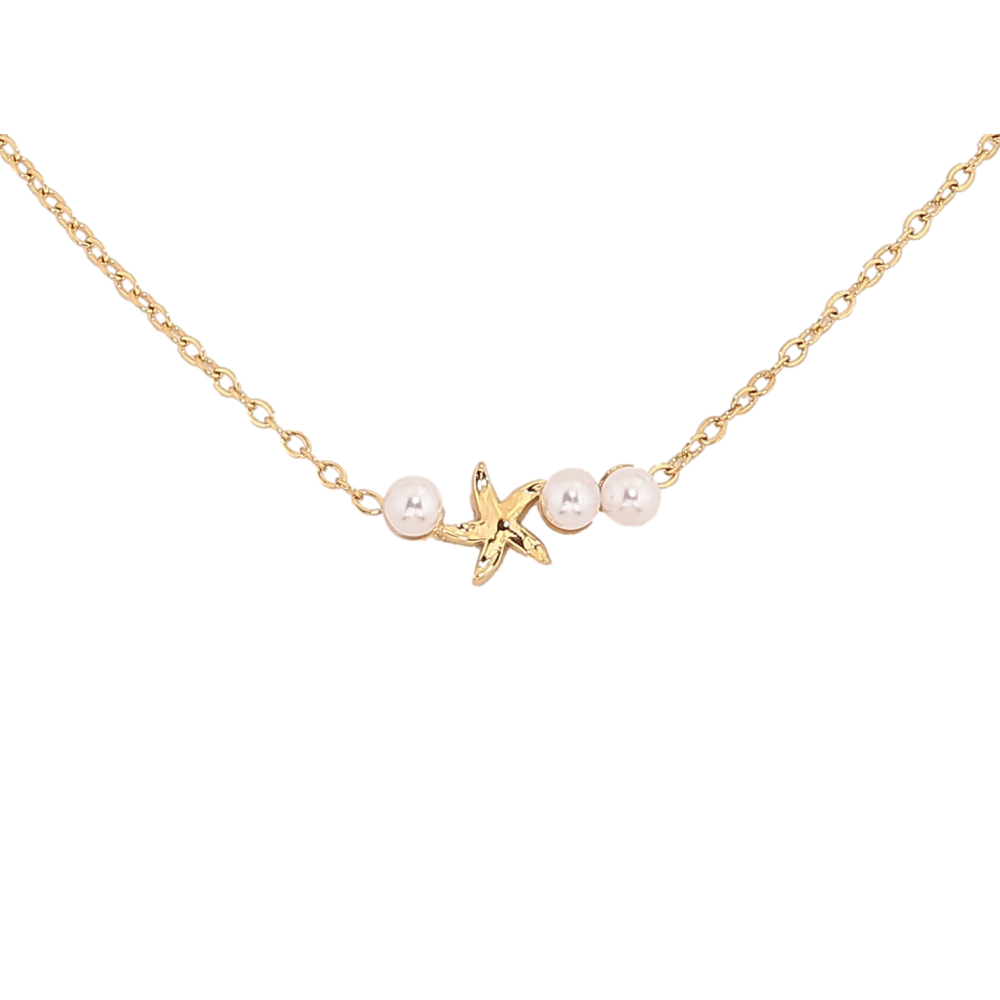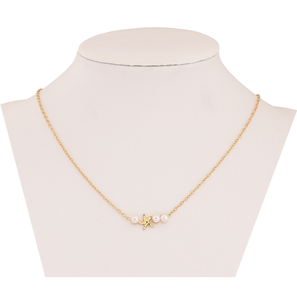 Підвіска на ланцюжку Xuping ТТМ Stainless Steel колір 14К "Морська зірка з перлинами" довжина 41-46см х 1мм