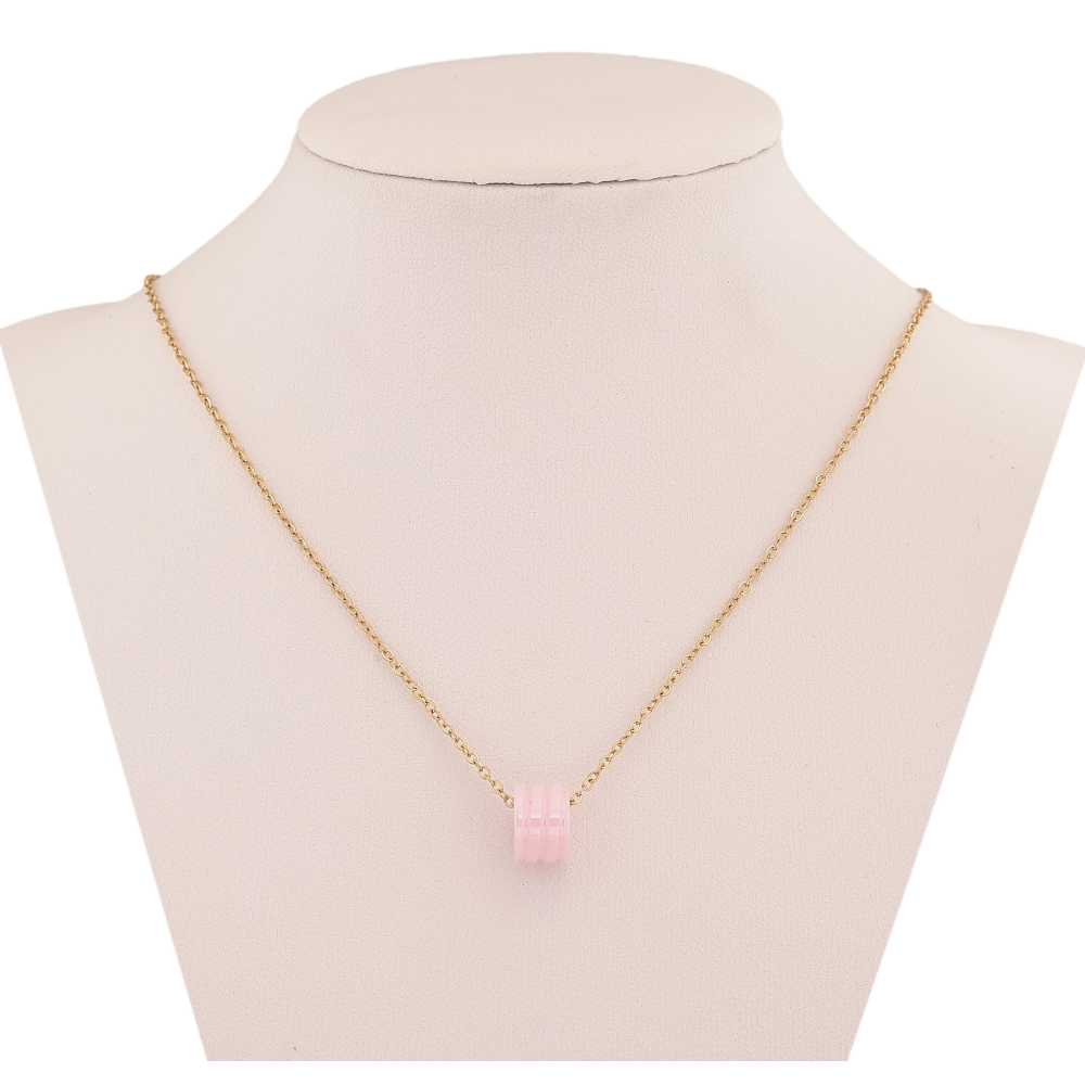 Підвіска на ланцюжку Xuping ТТМ Stainless Steel колір 14К "Намистина з рожевої кераміки" довжина 45-50см х 1мм