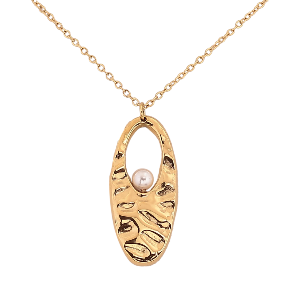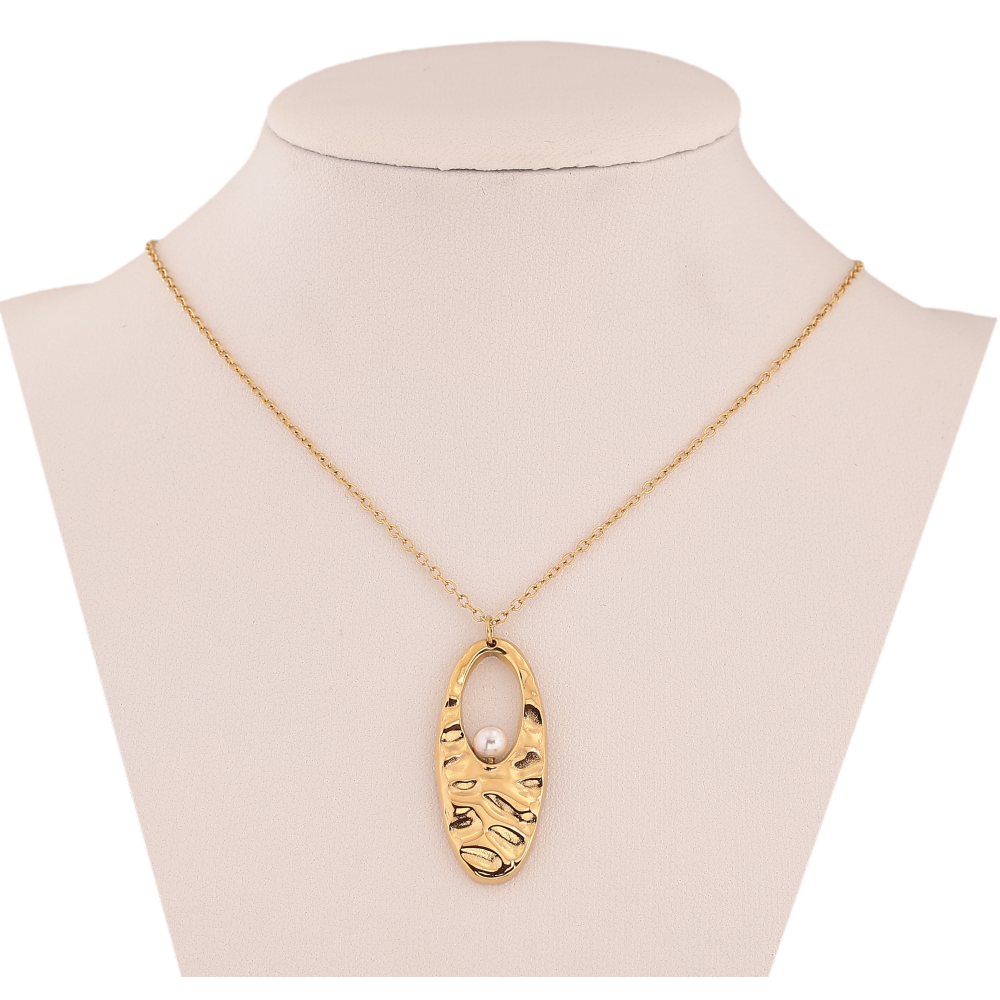 Підвіска на ланцюжку Xuping ТТМ Stainless Steel колір 14К "Овальна підвіска з перлиною" довжина 41-46см х 1мм