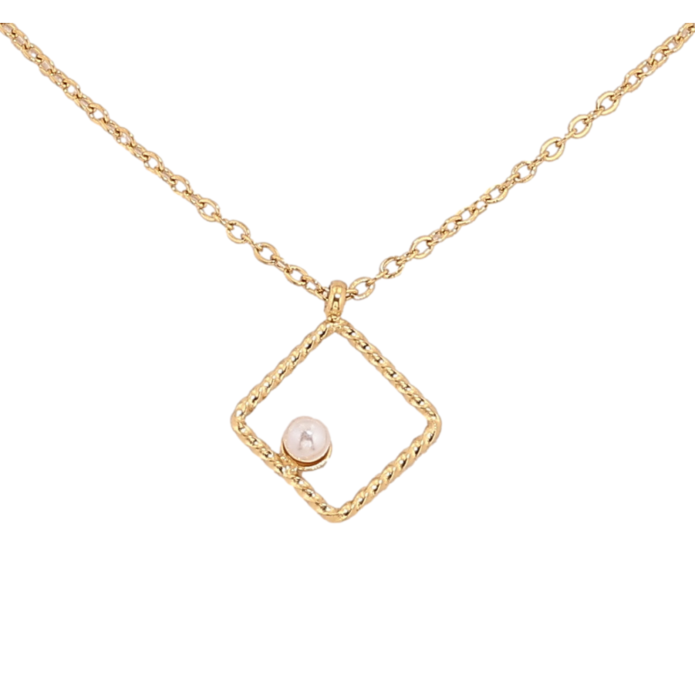 Підвіска на ланцюжку Xuping ТТМ Stainless Steel колір 14К "Ромб з перлиною" довжина 41-46см х 1мм