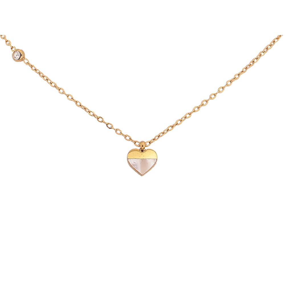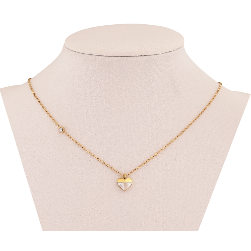 Підвіска на ланцюжку Xuping ТТМ Stainless Steel колір 14К "Серце з перламутром і кристалом" довжина 41-46см х 1мм