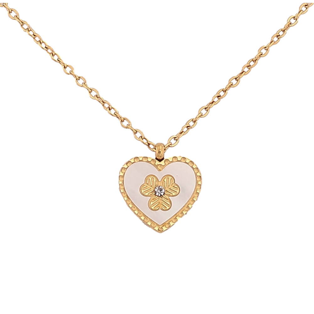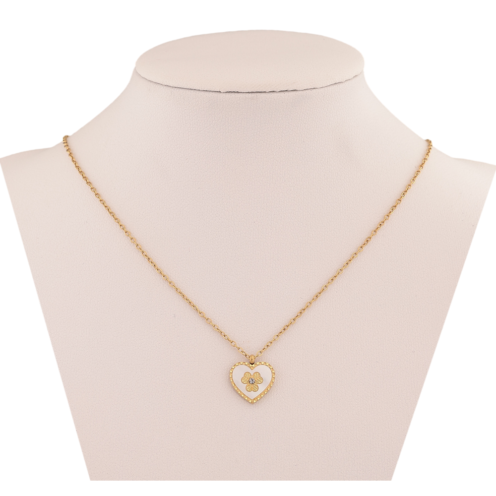 Підвіска на ланцюжку Xuping ТТМ Stainless Steel колір 14К "Серце з перламутровою вставкою і квіточкою" довжина 41-46см х 1мм