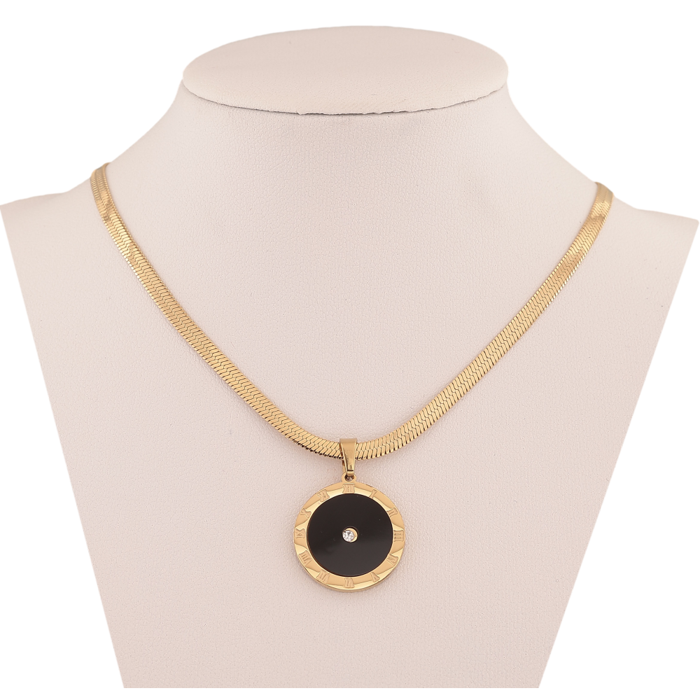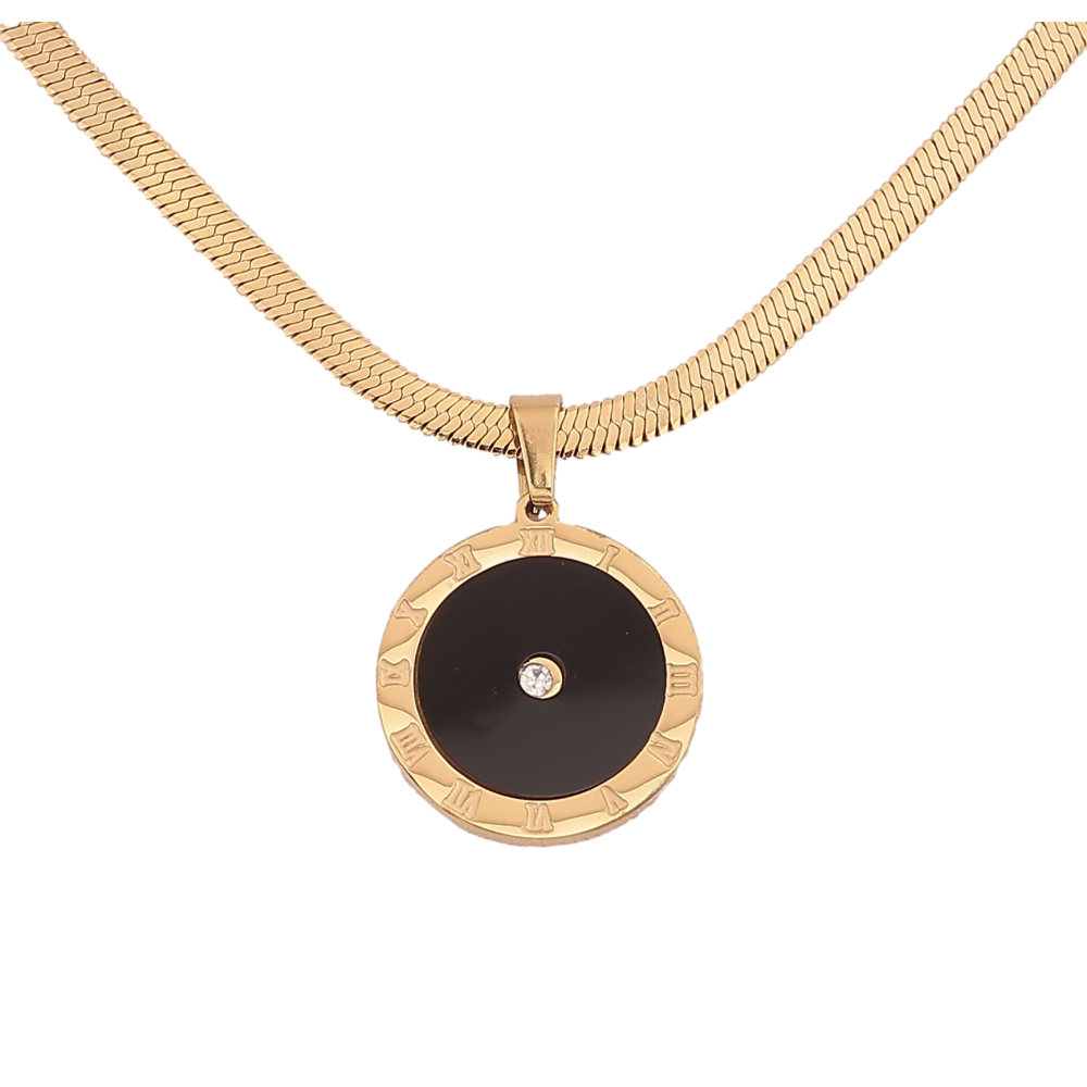 Підвіска на ланцюжку Xuping ТТМ Stainless Steel колір 14К "Циферблат з чорною вставкою та кристалом" довжина 40-45см х 3мм