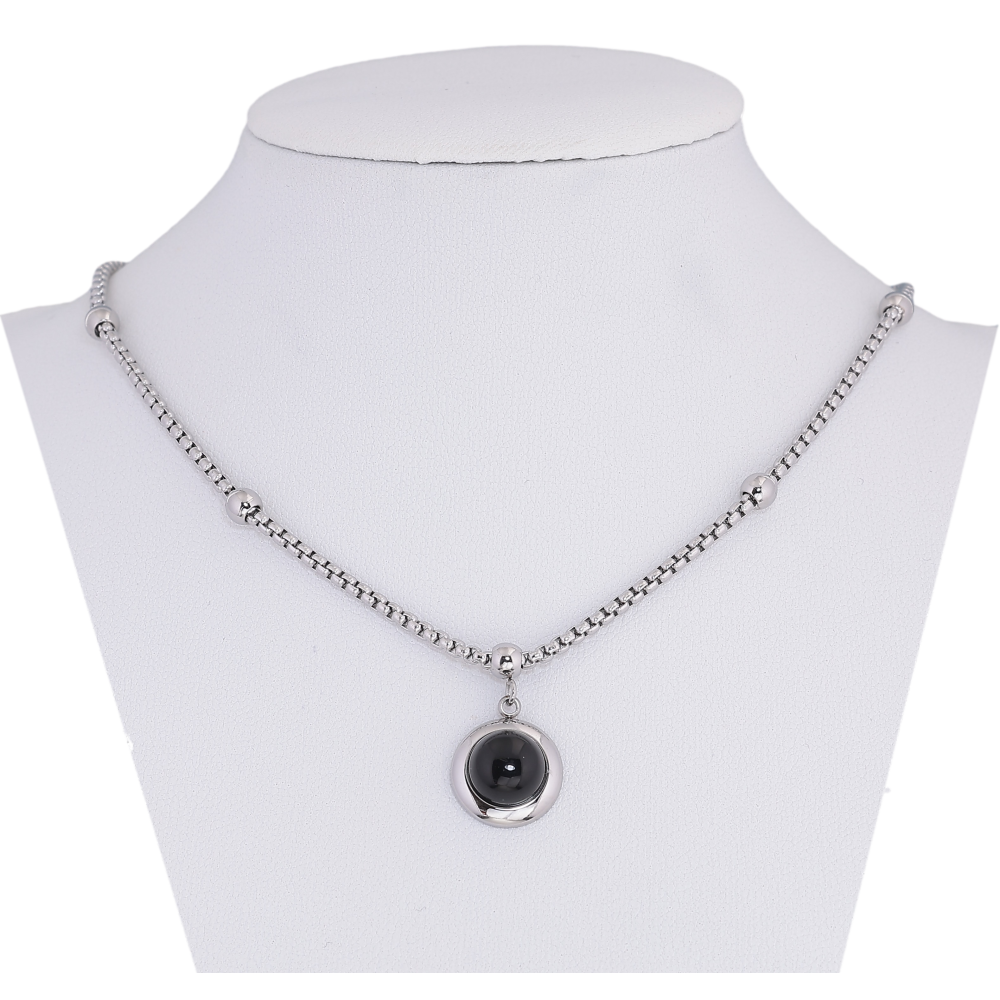 Підвіска на ланцюжку Xuping ТТМ Stainless Steel колір Родій "Коло з чорною вставкою" довжина 45-50см х 2-4мм