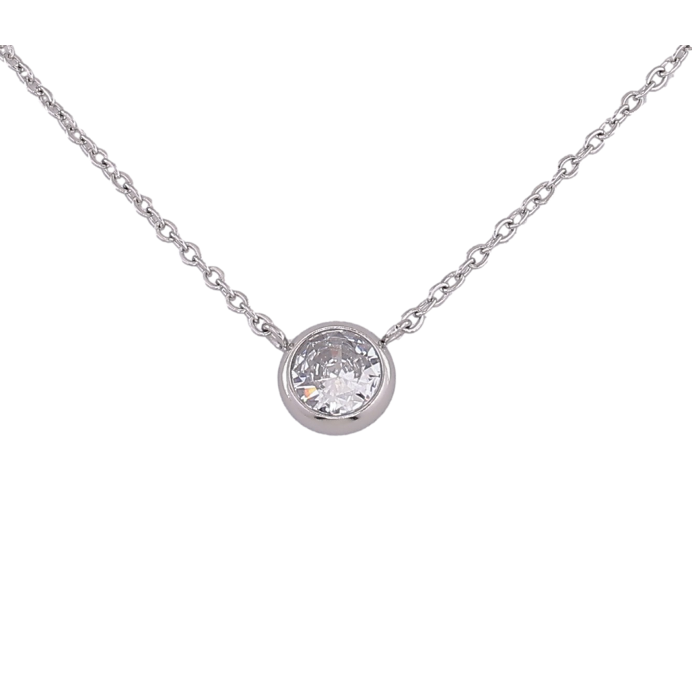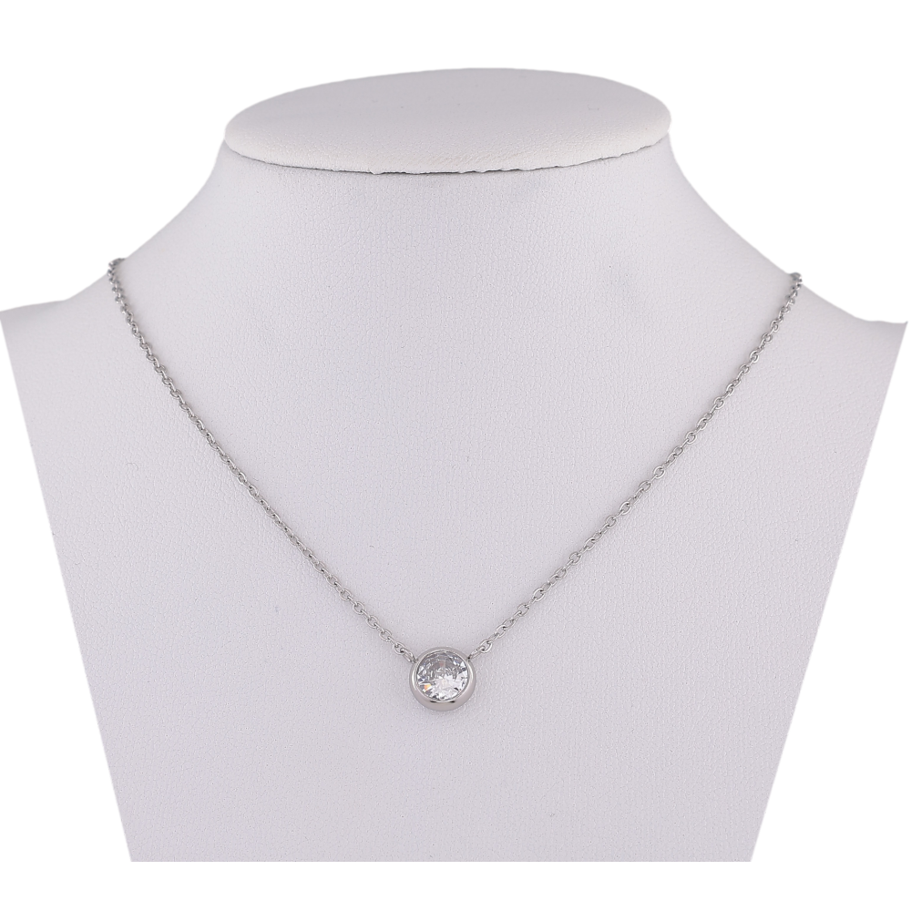 Підвіска на ланцюжку Xuping ТТМ Stainless Steel колір Родій "Кристал, ø 8мм" довжина 45-50см х 1.5мм