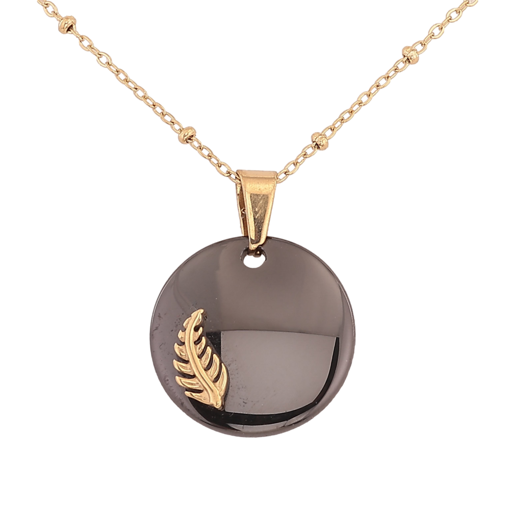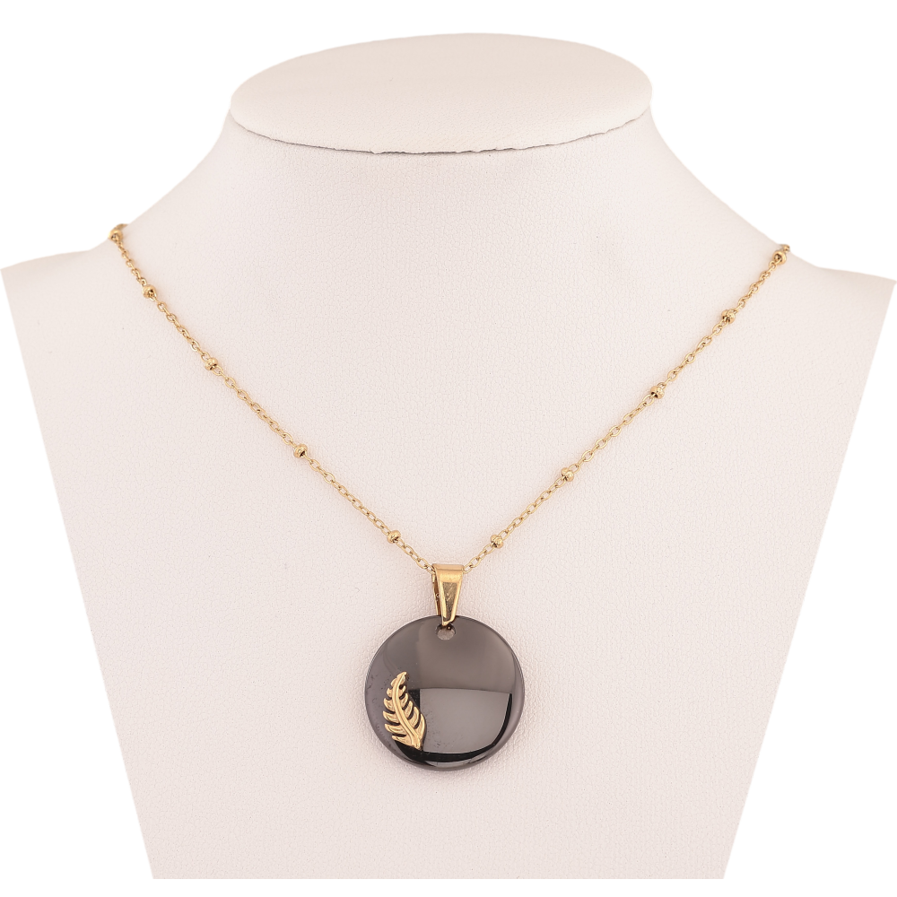 Підвіски на ланцюжку Xuping ТТМ Stainless Steel колір 14К "Чорний керамічний медальйон з гілочкою" довжина 45-51см х 1.5-2мм