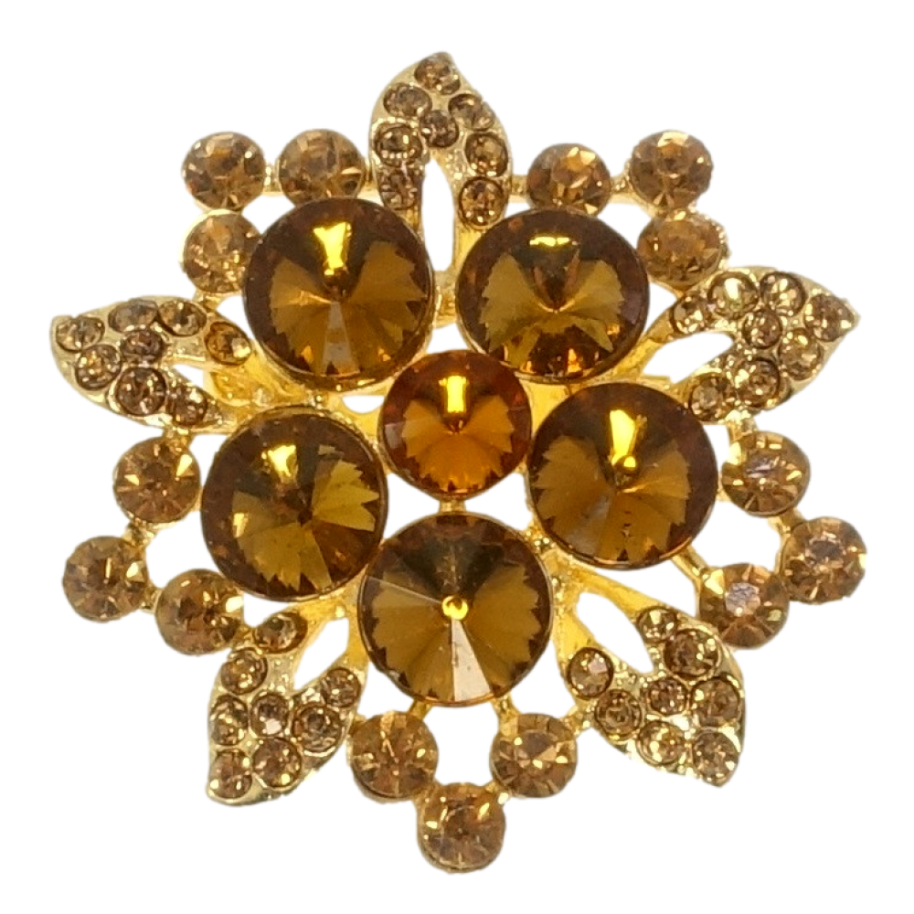 Брошь Цветок с коричневыми стразами