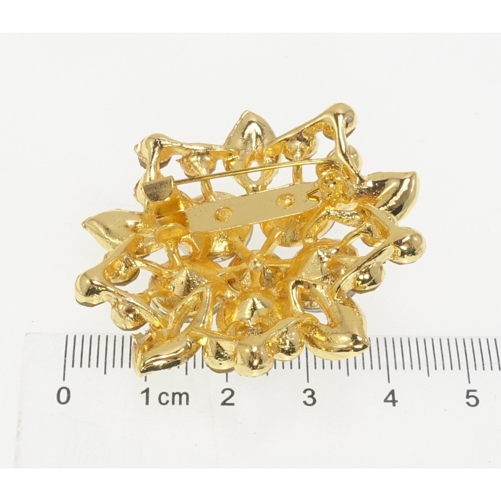 Брошь Цветок с коричневыми стразами фото №2