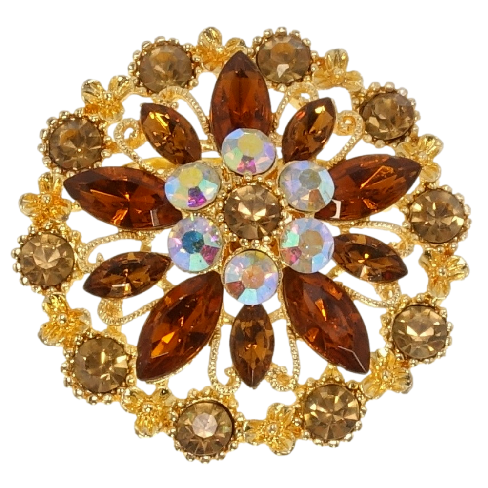 Брошь Сказочный цветок с коричневыми стразами фото №1