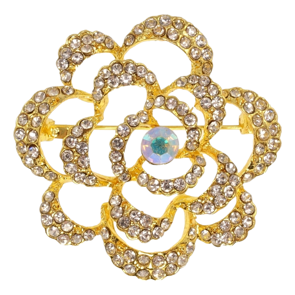 Брошь Цветок с белыми стразами
