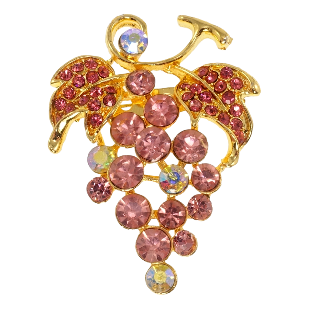 Брошь Виноградная гроздь с розовыми стразами