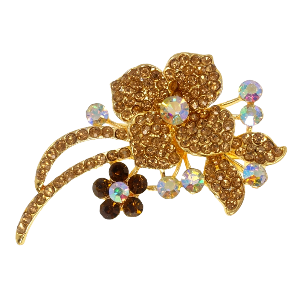 Брошь Цветочная композиция с коричневыми стразами фото №1