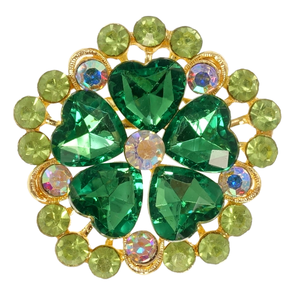 Брошь Цветок с зелёными кристаллами