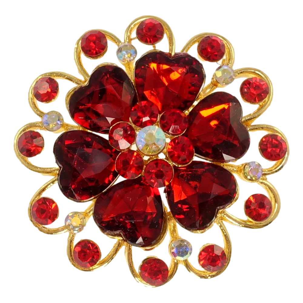Брошь Цветок с красными сердечками