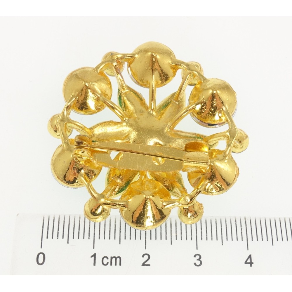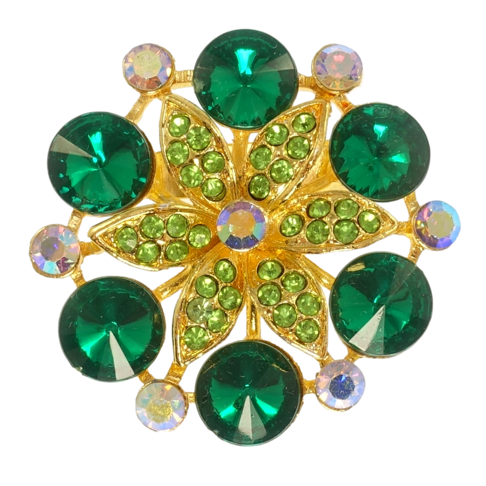 Брошь Снежинка с зелёными стразами