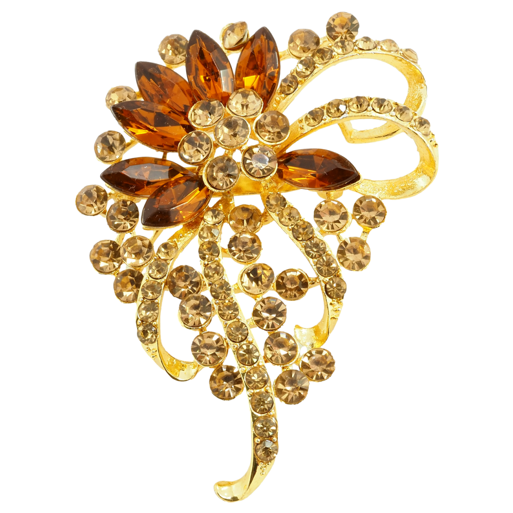 Брошь Цветочная композиция с коричневыми стразами
