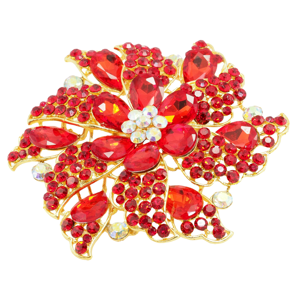 Брошь Большой цветок с красными стразами