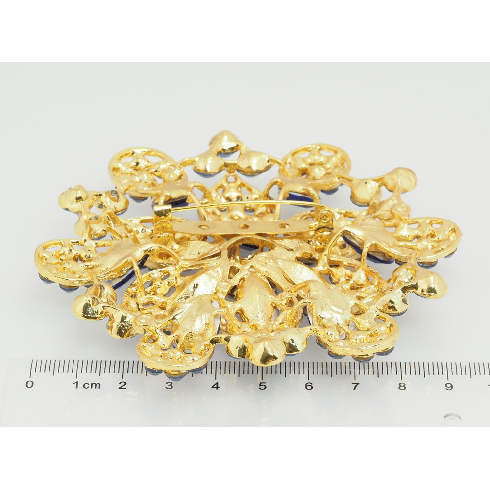 Брошь Большой цветок с синими стразами