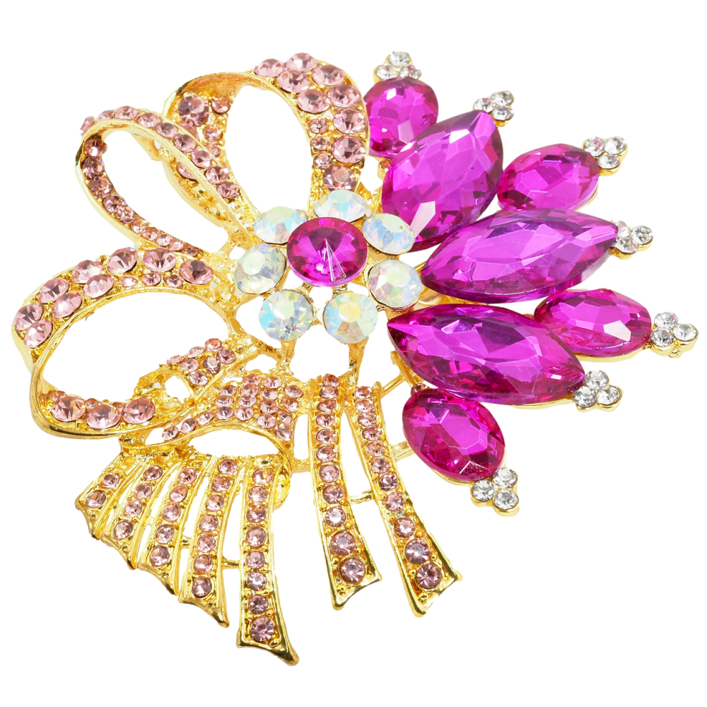 Брошь Большой букет с розовыми стразами
