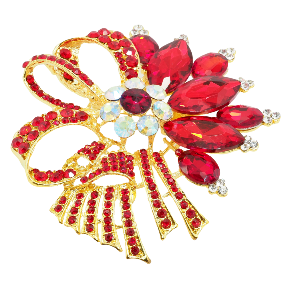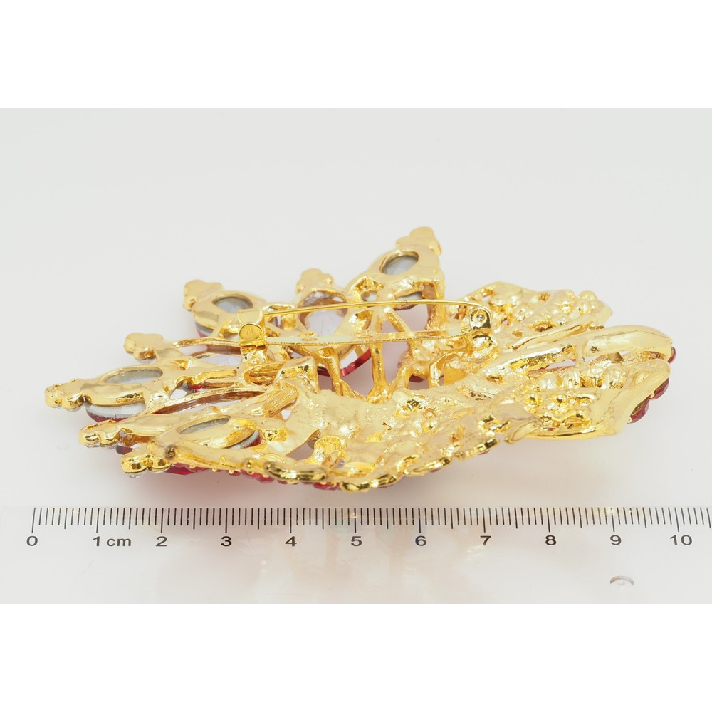 Брошь Большой букет с красными стразами