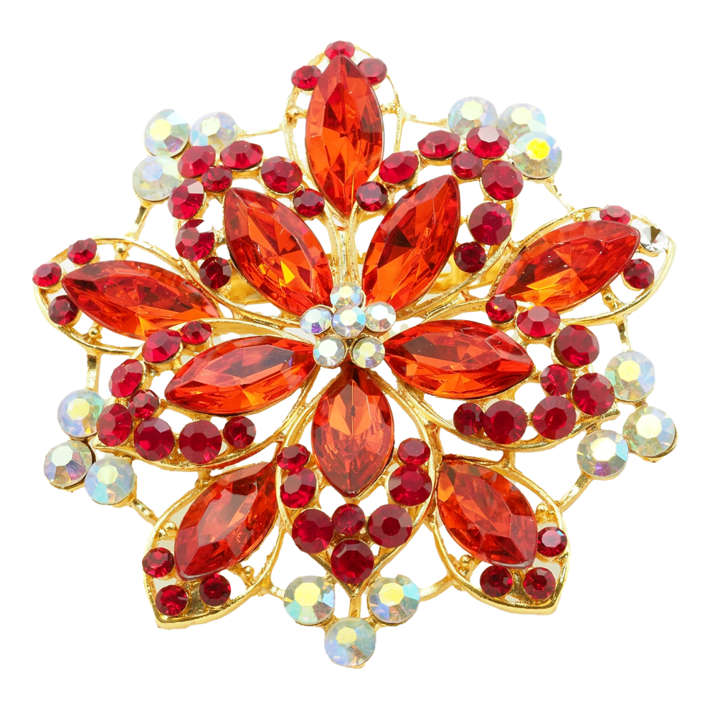Брошь-кулон Цветок с красными стразами