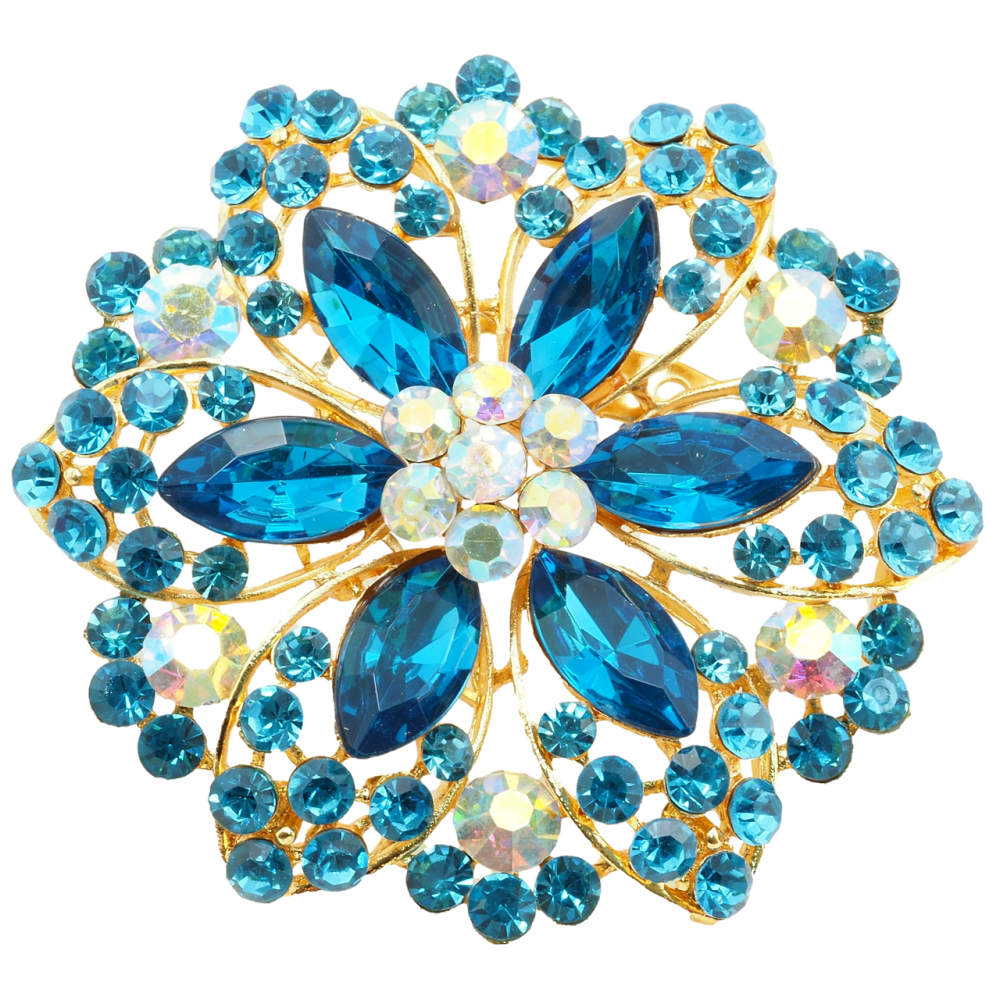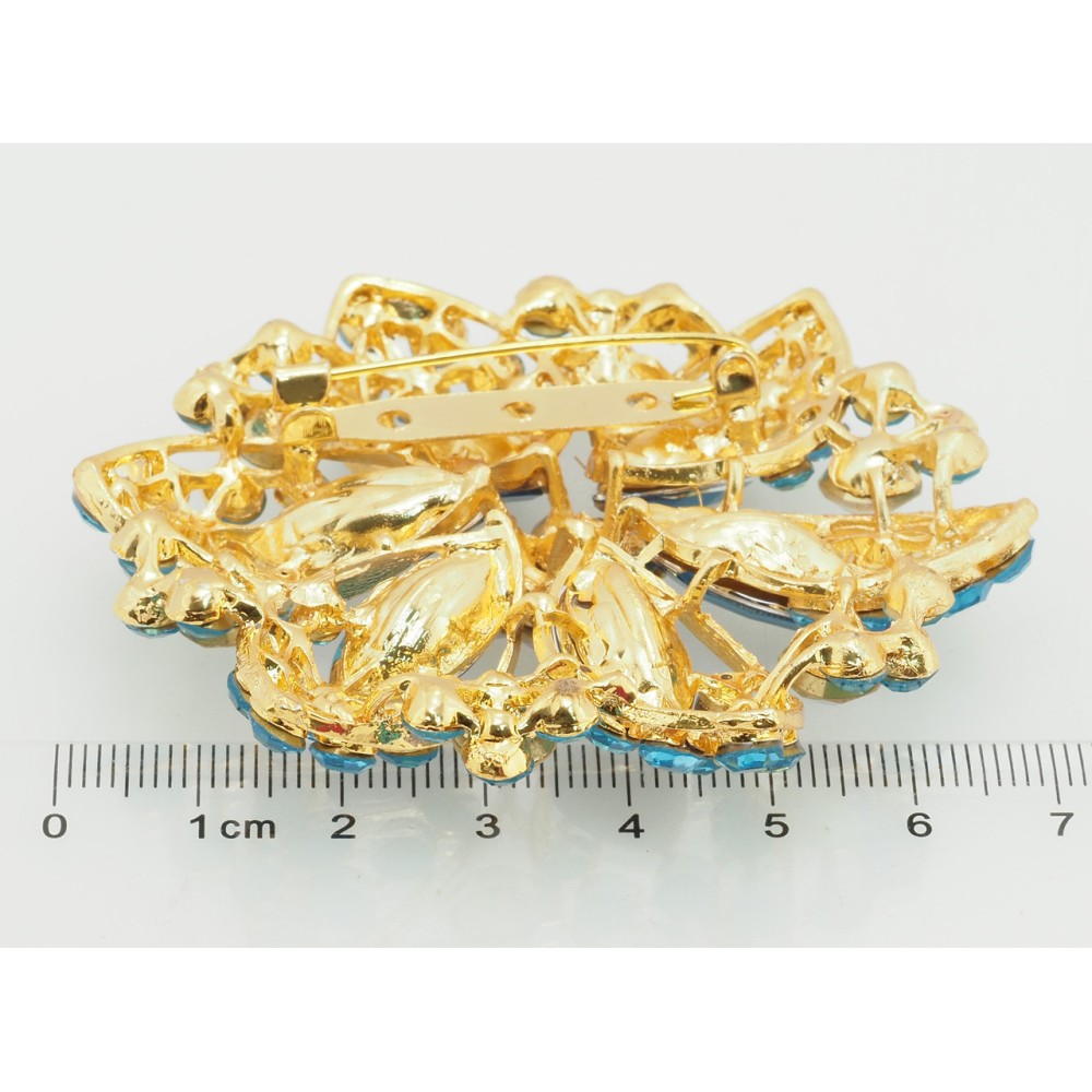 Брошь Цветок с голубыми стразами