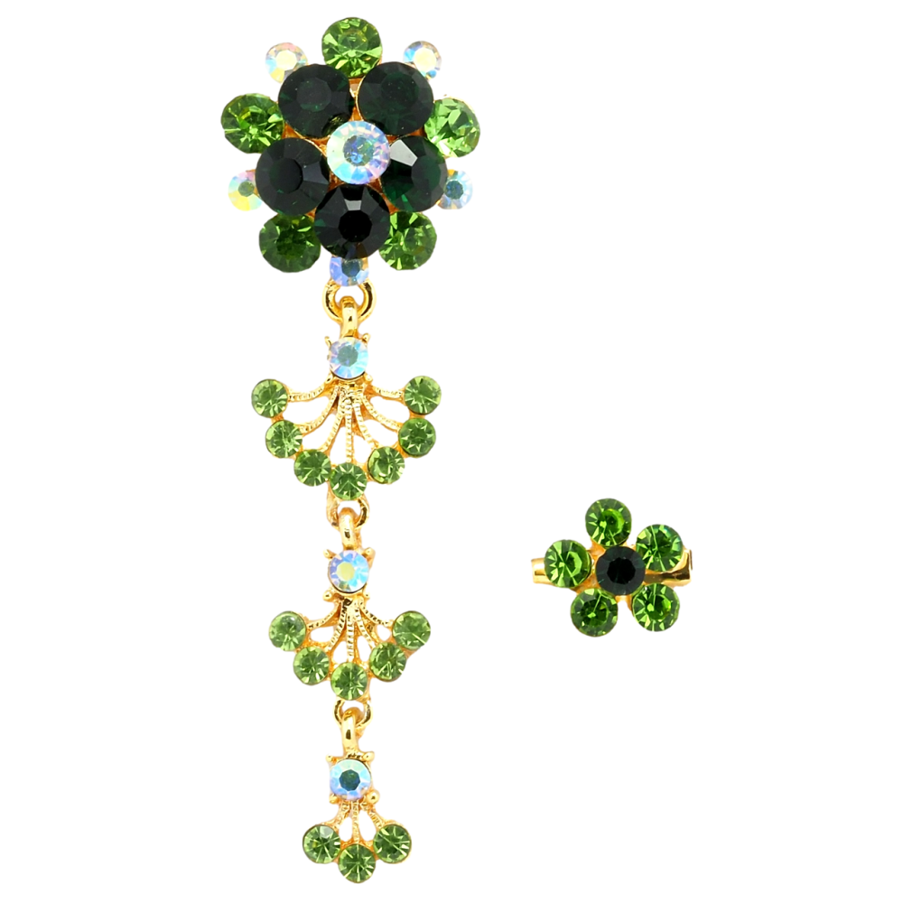 Брошь Две цветочные броши с зелеными стразами