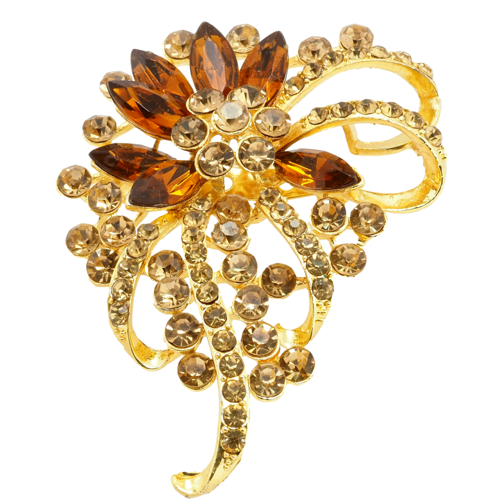 Брошь Цветочная композиция с золотистыми стразами фото №1