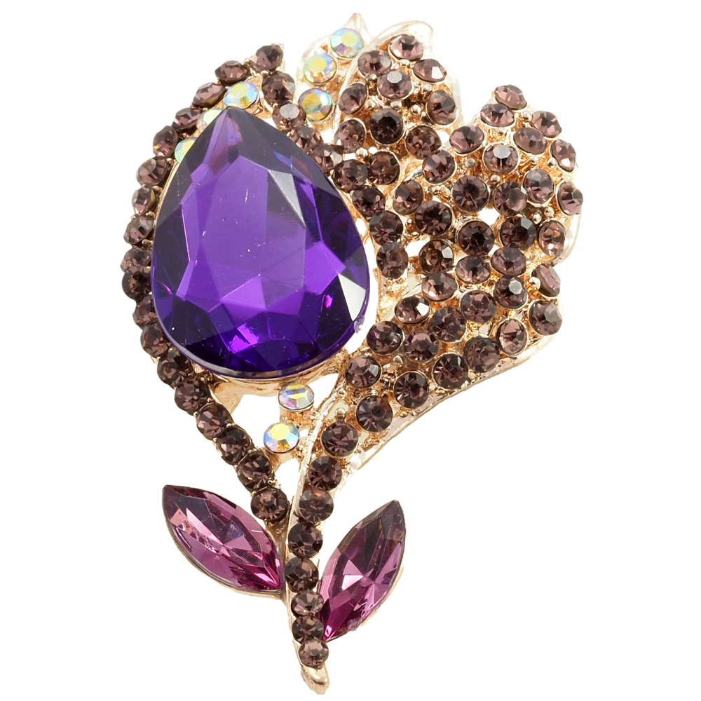 Брошь Цветок с сиреневыми стразами