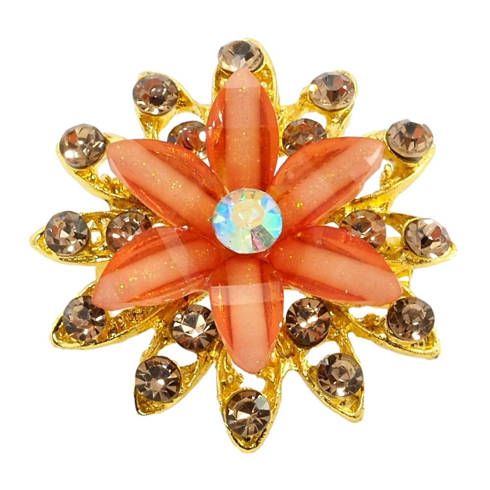 Брошь Цветок с оранжевыми стразами